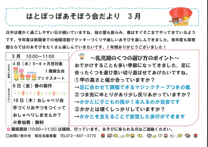 3月19日(木)はとぽっぽ遊ぼう会です!クッキーづくりと おしゃべり会をします